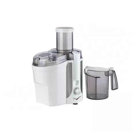 حداکثر توان مصرفی۵۰۰/کارکرد:تک کاره/تفاله جدا سوئیچ ایمنی/جنس تیغه (صافی)استیل ضد زن/گتوضیحات مخزن تفاله:دارای حجم ۲ لیترگنجایش مخزن آب میوه گیری۱تعداد تنظیمات سرعت۲امکانات و قابلیتها- دارای دو عدد میکروسوئیچ ایمنی دستگاه(فعال شدن در صورت بستن پوشش بالایی) - عایق کاری دوبل، دارای ۴ پایه لاستیکی چسبان ضد لرزش - دارای برس مخصوص برای تمیز کردن بسکت - دارای فیلتر و تیغه استیل - قابلیت جمع آوری سیم برق درون محفظه به صورت دستی - دارای گواهینامه استاندارد ایمنی محصولطول سیم۱.۵ سانتی مترجنس بدنه فلز و پلاستیکوزن۴.۶ گرم