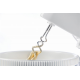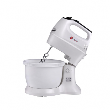 1- بدنه اصلی از جنس ABS ( سفید ) مجهز بهکلید کنترل سرعت ( 5 حالت از 1 تا 5) و خاموش مشترک با دکمه Eject چنگگ ها ( Eject : قابل استفاده فقط در حالت خاموش )دکمه Turbo برای افزایش سرعت 1 تا 5 محصول به صورت لحظه ای با کمی بیش از سرعت انتخاب شده، حداکثر زمان استفاده از حالت Turbo 30s لحاظ شده است . دارای 2 عدد چنگگ خمیر زن ( چنگگ مجهز به چرخدنده و رینگ پلاستیکی و چنگگ مجهز به رینگ فلزی یکپارچه با چنگگ) برای خمیرهای غلیط و 2 عدد چنگگگ تخم مرغ زن ( چنگگ مجهز به چرخ دنده و ریگ پلاستیکی و چنگگ مجهز به رینگ فلزی یکپارچه با چنگگ ) برای همزدن تخم مرغ ، خمیر کیک ، چنگگ های مجهز به رینگ فلزی باید روی سوراخ بزرگتر نصب شود . )