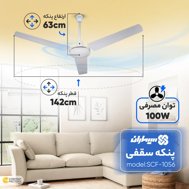 توان مصرفی: 100 واتسایز پره ها: 56 اینچجنس سیم پیچی: 100% مس