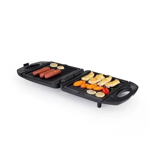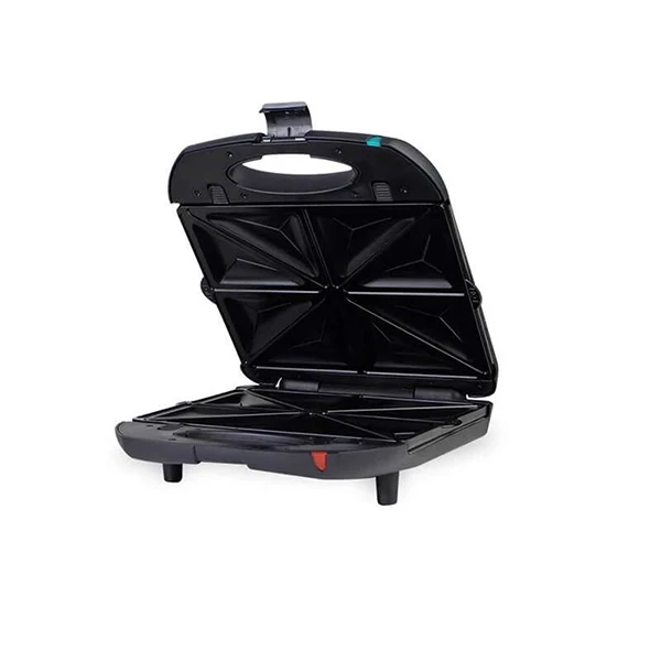 برای تهیه ساندویچهای گرم بسیار ایده آل است. این دستگاه با بدنهی مقاوم به حرارتی که دارد علاوه بر زیبایی استحکام بالایی نیز دارا است . روی آن دو چراغ مربوط به ترموستات دستگاه تعبیهشده است تا وضعیت عملکرد دستگاه را نشان دهد. طراحی این دستگاه به گونه ای است که با باز کردن در دستگاه 4 خانه مربع شکل که هر یک به دو مثلث تقسیمشدهاند دیده میشود که درنهایت امکان تهیه 4 ساندویچ را میدهد. با چیدن و آماده کردن مواد اولیه در نان مربوطه و قرار دادن آنها داخل ساندویچ ساز و بستن در دستگاه، صفحات داغ شده و ساندویچ شما آماده میشود. توان بالای 1300 واتی دستگاه تهیه ساندویچ را سریع و باکیفیت انجام میدهد. از نکات قوت این ساندویچ ساز، قابلیت جدا شدن سینیها است تا بهراحتی تمیز و شسته شوند و ِ صفحه گریل جایگزین آن می شود.