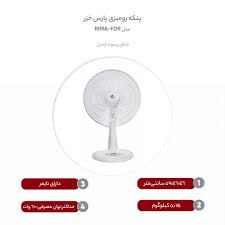 مجهز به کنترل از راه دور حجم باددهی بالا به میزان 54 متر مکعب بردقیقه -مجهز به تایمر 2 ساعتهجهت زمان کارکرد - مجهز به پروانه شفاف 3 پره -دارای حالت ریتم جهت تغییر اتوماتیک دور پروانه- قابلیت گردش افقی با کنترل از راه دور -موتور پر قدرت با سه دور متفاوت, مجهز به فیوز حرارتی مجهز به دکمه جهت تغییر دور بصورت مکانیکی- سیم دوشاخه 2متری پی وی سی -رنگ بدنه مشکی/سفید